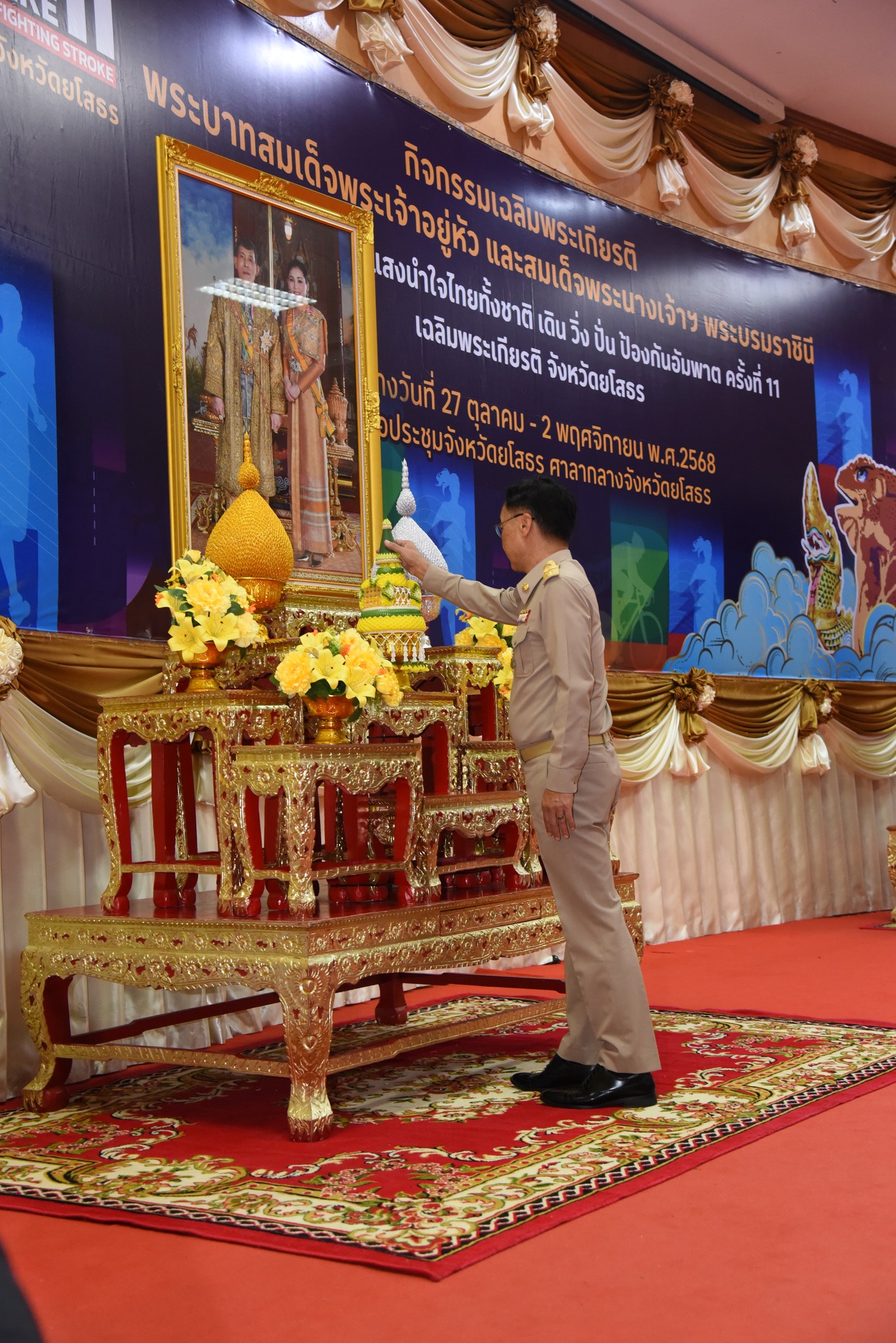 นายชาญชัย ศรศรีวิชัย ผู้ว่าราชการจังหวัดยโสธร เป็นประธานในพิธีเปิดกิจกรรมเฉลิมพระเกียรติพระบาทสมเด็จพระเจ้าอยู่หัว และสมเด็จพระนางเจ้าฯ พระบรมราชินี ภายใต้โครงการ "แสงนำใจไทยทั้งชาติ เดิน วิ่ง ปั่น ป้องกันอัมพาต ครั้งที่ 11 เฉลิมพระเกียรติ จังหวัดยโสธร ประจำปี 2568" โดยมี นางนันทพร ศรศรีวิชัย นายกเหล่ากาชาดและประธานแม่บ้านมหาดไทยจังหวัดยโสธร ศาล อัยการ ทหาร ตำรวจ รองนายแพทย์สาธารณสุขจังหวัดยโสธร พร้อมด้วยหัวหน้าส่วนราชการ ข้าราชการ ประชาชน และสื่อมวลชนเข้าร่วมงานอย่างคับคั่ง โดยในการนี้ นายณัฐพล นาคสุข นายกเทศมนตรีเมืองยโสธร ได้มอบหมายให้ นายสุธา บรรตานึก รองนายกเทศมนตรีเมืองยโสธร เข้าร่วมในพิธี ณ หอประชุมจังหวัดยโสธร ศาลากลางจังหวัดยโสธร โครงการ "แสงนำใจไทยทั้งชาติ เดิน วิ่ง ปั่น ป้องกันอัมพาต" จัดขึ้นโดยศูนย์โรคหลอดเลือดสมองศิริราช คณะแพทยศาสตร์ศิริราชพยาบาล ร่วมกับศิริราชมูลนิธิ เพื่อเฉลิมพระเกียรติพระบาทสมเด็จพระเจ้าอยู่หัว และสมเด็จพระนางเจ้าฯ พระบรมราชินี ผู้ทรงเป็นแบบอย่างในการรักษาสุขภาพและการออกกำลังกายแก่ประชาชนชาวไทย จังหวัดยโสธรได้ร่วมจัดกิจกรรมอย่างต่อเนื่องเป็นปีที่ 11 เพื่อสร้างความตระหนักและส่งเสริมการดูแลสุขภาพของประชาชนในพื้นที่ ขอขอบคุณ #สำนักงานประชาสัมพันธ์จังหวัดยโสธร