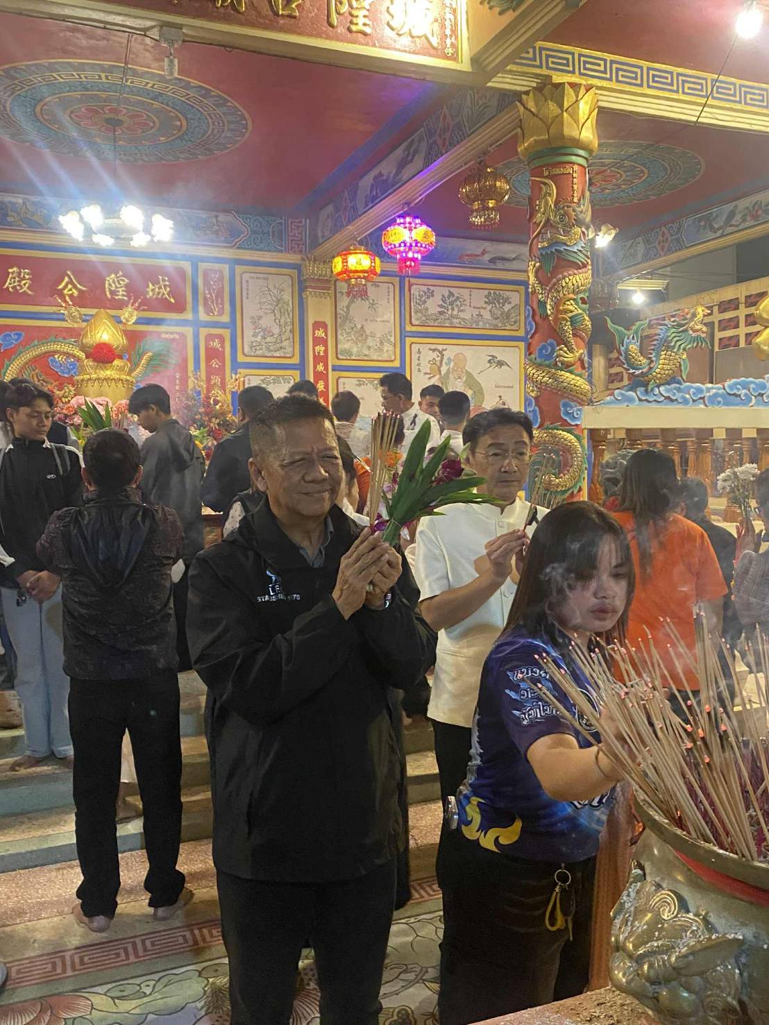 นายชาญชัย ศรศรีวิชัย ผู้ว่าราชการจังหวัดยโสธร พร้อมด้วย นางนันทพร ศรศรีวิชัย ประธานแม่บ้านมหาดไทยจังหวัดยโสธร, นายณัฐพล นาคสุข นายกเทศมนตรีเมืองยโสธร, คณะผู้บริหารเทศบาลเมืองยโสธร, สมาชิกสภาเทศบาลเมืองยโสธร, หัวหน้าส่วนราชการเทศบาลเมืองยโสธร และพี่น้องประชาชน ร่วมพิธีสักการะศาลเจ้าพ่อหลักเมือง เสริมสิริมงคล ส่งท้ายปีเก่าต้อนรับปีใหม่ ประจำปี 2569 โดยบรรยากาศเต็มไปด้วยประชาชนที่ออกมาส่งท้ายปีเก่าต้อนรับปีใหม่ ร่วมสักการะศาลเจ้าพ่อหลักเมือง เพื่อขอพรและสิริมงคลตลอดปี 2569 นี้ ณ บริเวณศาลเจ้าพ่อหลักเมือง เทศบาลเมืองยโสธร งานประชาสัมพันธ์ เทศบาลเมืองยโสธร โทร 045-712252