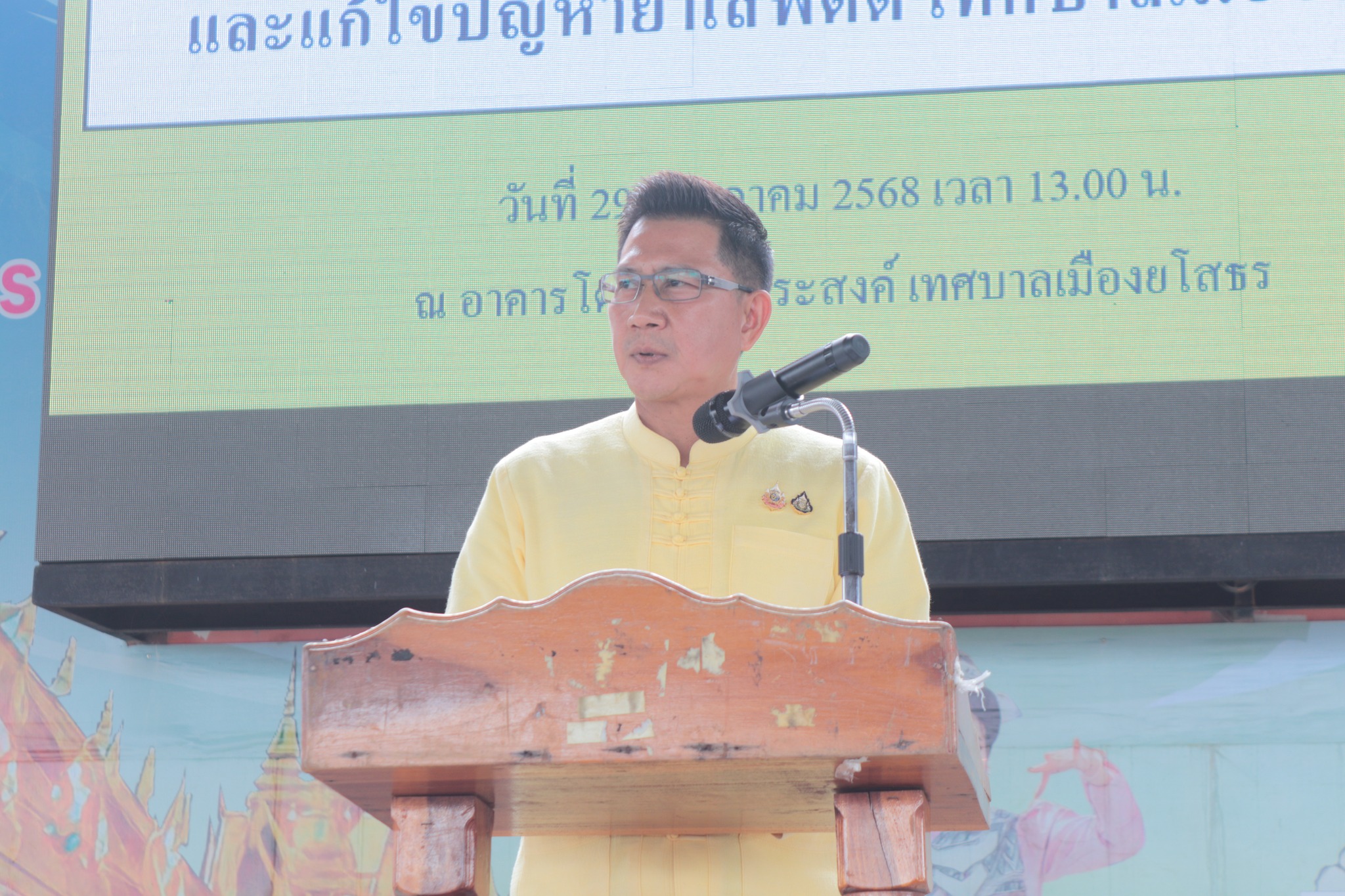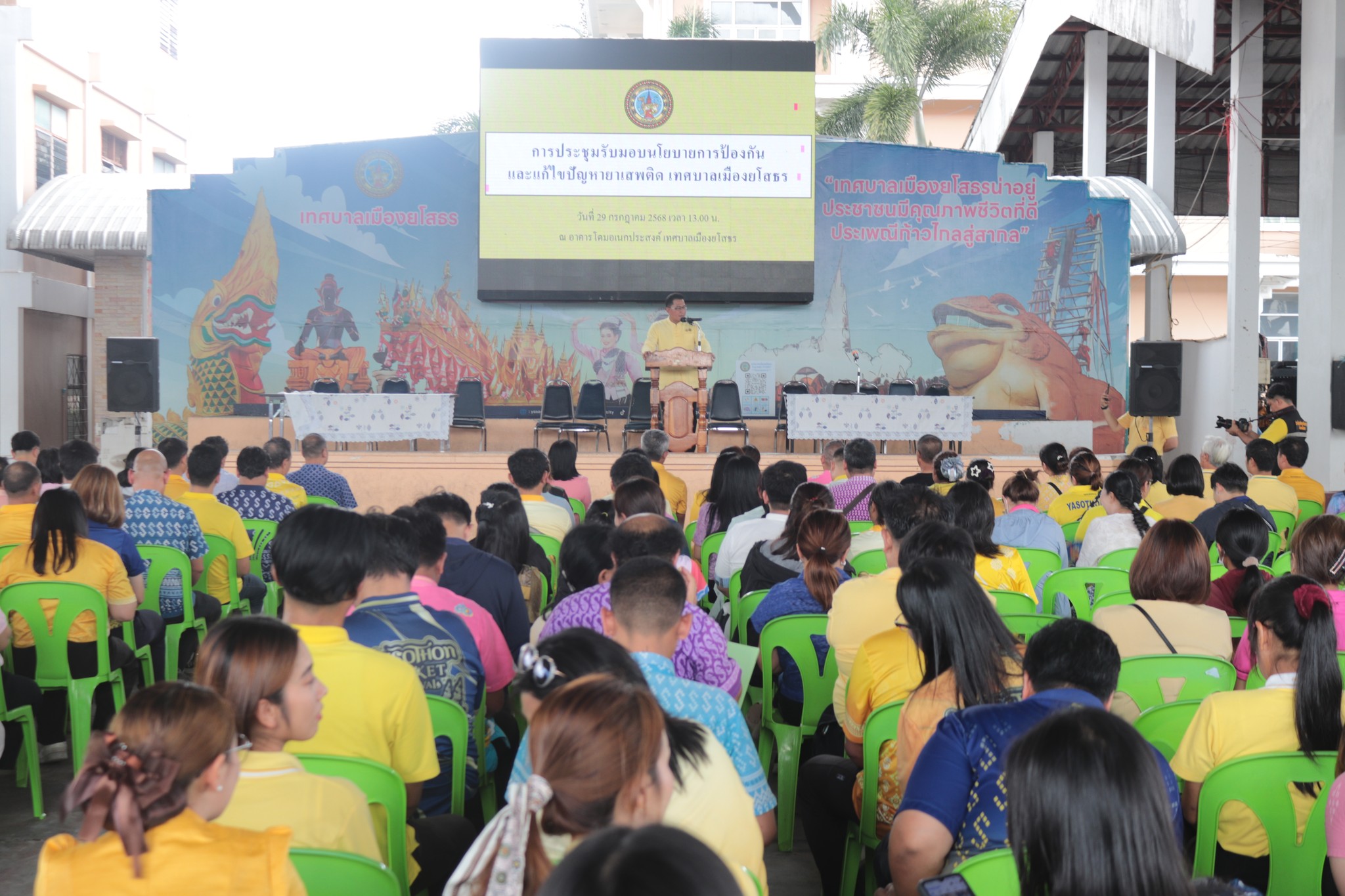 นายณัฐพล นาคสุข นายกเทศมนตรีเมืองยโสธร ได้มอบหมายให้ นายสุธา บรรตานึก รองนายกเทศมนตรีเมืองยโสธร พร้อมด้วยคณะผู้บริหาร จัดประชุมรับมอบนโยบายด้านการป้องกันและแก้ไขปัญหายาเสพติดตามนโยบายรัฐมนตรีว่าการกระทรวงมหาดไทย “ มหาดไทยเอาจริง” ทุกพื้นที่ทั่วไทยบูรณาการทุกกลไกปฏิบัติการกวดล้างยาเสพติด “No Drugs No Dealers” ผนึกกำลังสร้างหมู่บ้านชุมชนปลอดยาเสพติด โดยมีว่าที่ร้อยตรี ขรรค์ไชย ทันธิมา รองผู้ว่าราชการจังหวัดยโสธร เป็นประธานในการเปิดการประชุม ณ ลานอเนกประสงค์เทศบาลเมืองยโสธร(โดม) โดยมีเป้าหมายที่เข้าร่วมประชุมประกอบด้วย คณะผู้บริหาร ข้าราชการ ลูกจ้างประจำ พนักงานจ้างตามภารกิจ พนักงานจ้างเหมาบริการ ในสังกัดเทศบาลเมืองยโสธรยโสธร สำนักงานเทศบาลเมืองยโสธร โทร 045-712252