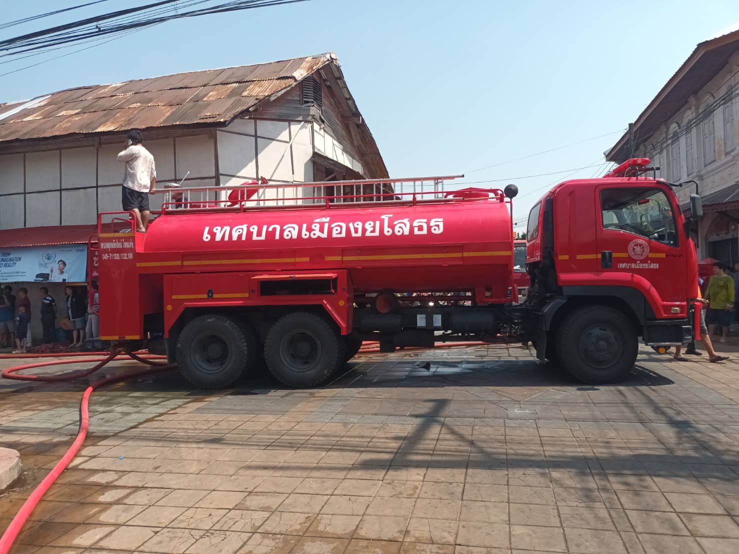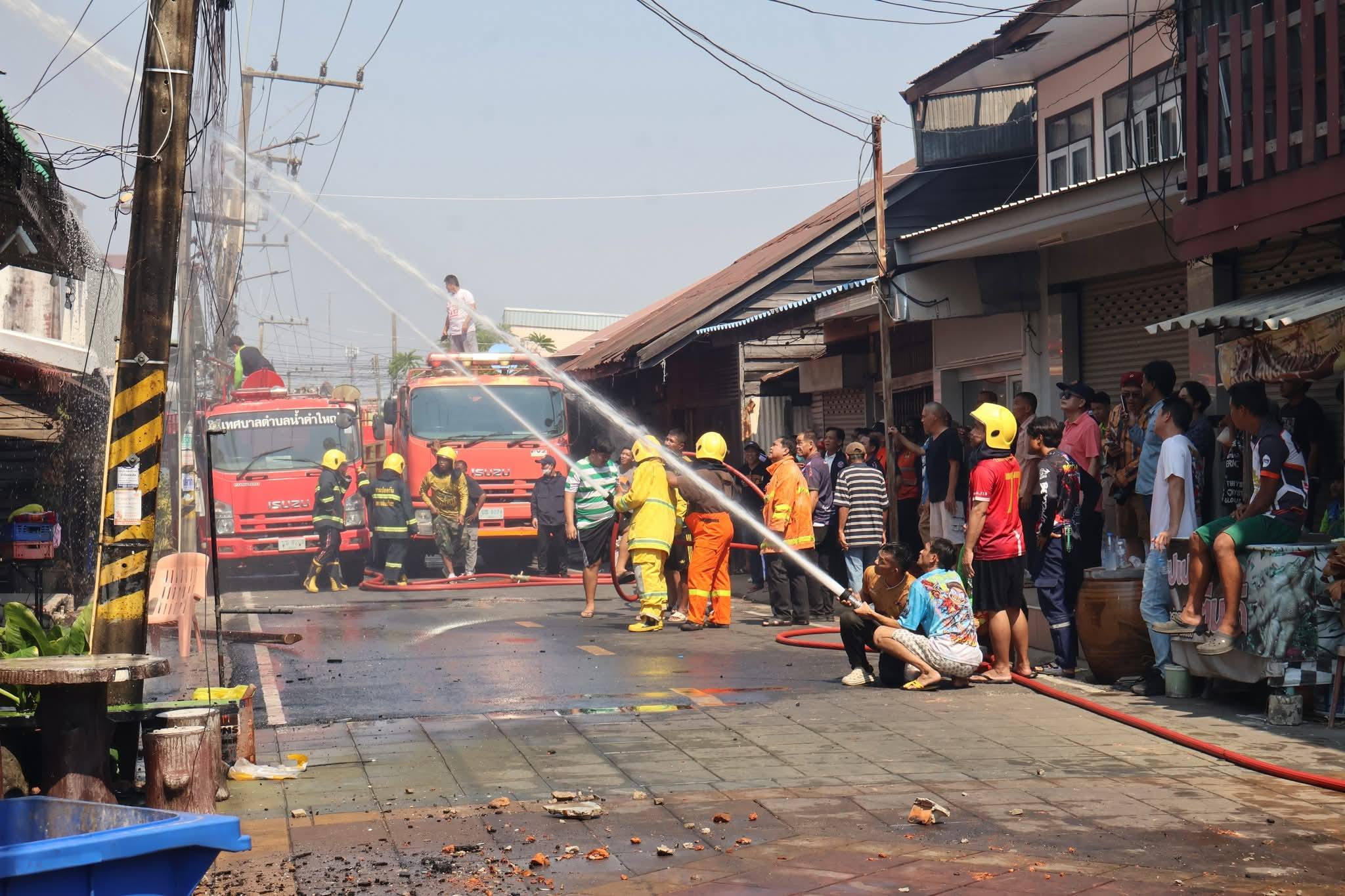 เทศบาลเมืองยโสธร เข้าระงับเหตุไฟไหม้บ้านไม้เก่า ย่านเมืองเก่าบ้านสิงห์ท่า