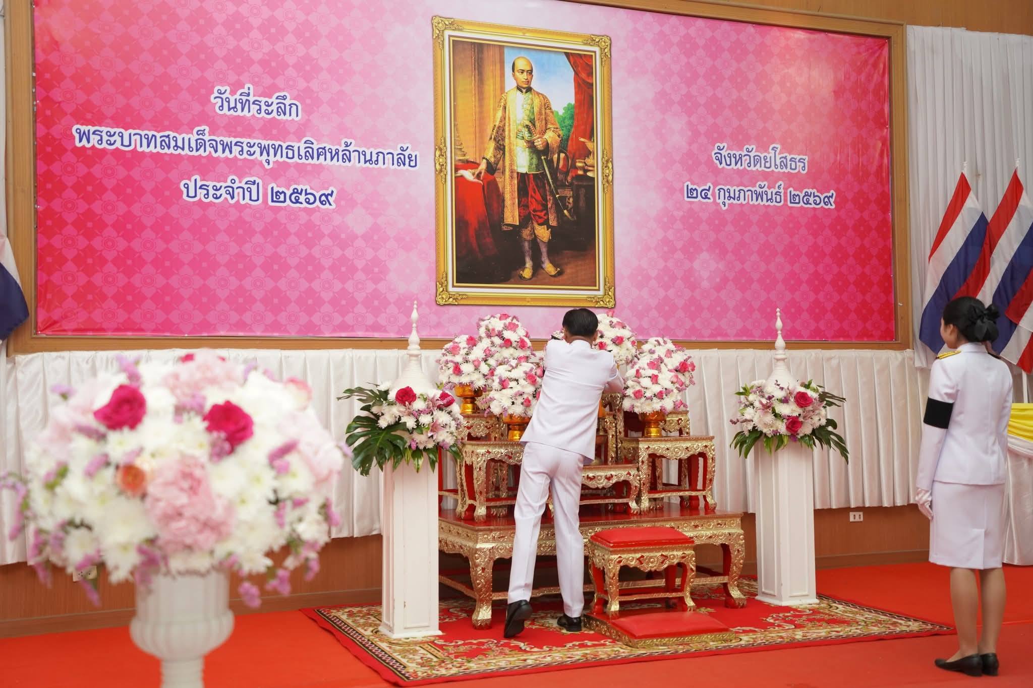 นายณัฐพล นาคสุข นายกเทศมนตรีเมืองยโสธร ได้มอบหมายให้นายสุธา บรรตานึก รองนายกเทศมนตรีเมืองยโสธร นำข้าราชการสังกัดเทศบาลเมืองยโสธร ร่วมพิธีฯ ณ หอประชุมที่ว่าการอำเภอเมืองยโสธร จังหวัดยโสธร โดยมีนายชาญชัย ศรศรีวิชัย ผู้ว่าราชการจังหวัดยโสธร เป็นประธานในพิธีวางพานพุ่มดอกไม้สดถวายราชสักการะ เนื่องในวันที่ระลึกพระบาทสมเด็จพระพุทธเลิศหล้านภาลัย ประจำปี 2569 โดยมีนางนันทพร ศรศรีวิชัย นายกเหล่ากาชาดและประธานแม่บ้านมหาดไทยจังหวัดยโสธร พร้อมด้วยนายขรรค์ไชย ทันธิมา และนายสันชัย พัฒนวิชัย รองผู้ว่าราชการจังหวัดยโสธร คณะหัวหน้าส่วนราชการ ศาล ทหาร ตำรวจ และประชาชนชาวจังหวัดยโสธร ร่วมประกอบพิธีน้อมรำลึกในพระมหากรุณาธิคุณแสดงออกถึงความจงรักภักดี พระองค์ทรงเป็นพระมหากษัตริย์ผู้ทรงปรีชาสามารถล้ำเลิศในด้านอักษรศาสตร์และศิลปวัฒนธรรม ทรงพระราชนิพนธ์วรรณคดีอันเป็นมรดกทางวัฒนธรรมของชาติมากมาย อาทิ บทละครเรื่องอิเหนา บทละครเรื่องสังข์ทอง และทรงฟื้นฟูพระราชพิธีสำคัญต่าง ๆ รวมถึงทรงเป็นองค์อุปถัมภกศิลปวัฒนธรรมไทยให้รุ่งเรืองถึงขีดสุด จนได้รับการยกย่องว่าเป็นยุคทองแห่งวรรณคดี ด้วยพระอัจฉริยภาพที่โดดเด่น องค์การยูเนสโก (UNESCO) จึงได้ประกาศยกย่องให้พระองค์ทรงเป็นบุคคลสำคัญของโลก สาขาวรรณกรรม เมื่อปี พ.ศ. 2511 นับเป็นพระมหากษัตริย์นักปราชญ์และอัครศิลปินที่อยู่ในดวงใจของปวงชนชาวไทยตลอดกาล