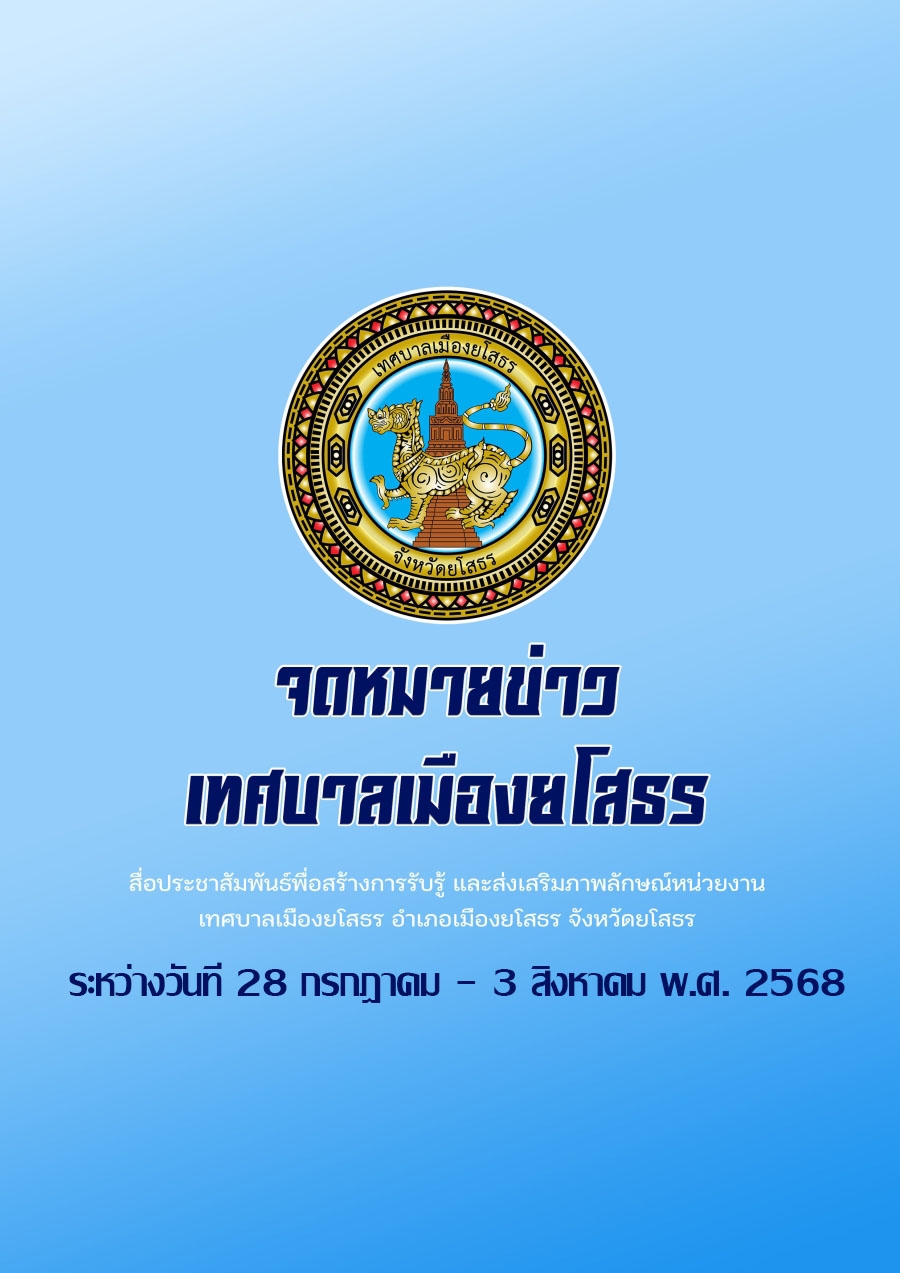 จดหมายข่าว เทศบาลเมืองยโสธร อำเภอเมือง จังหวัดยโสธร เดือนกรกฎาคม 2568 (วันที่ 28 กรกฎาคม-3 สิงหาคม 2568)